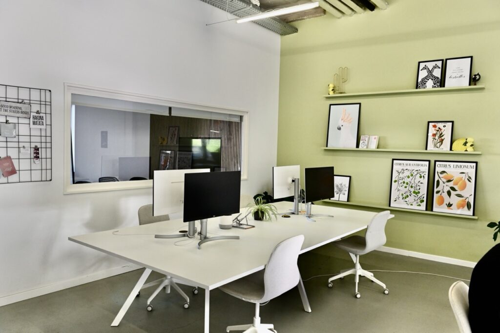 Bij ons vind je flexibele werkplekken uitgerust met moderne beeldschermen, een volledig nieuw ingerichte meetingruimte en een gezellige koffiecorner.